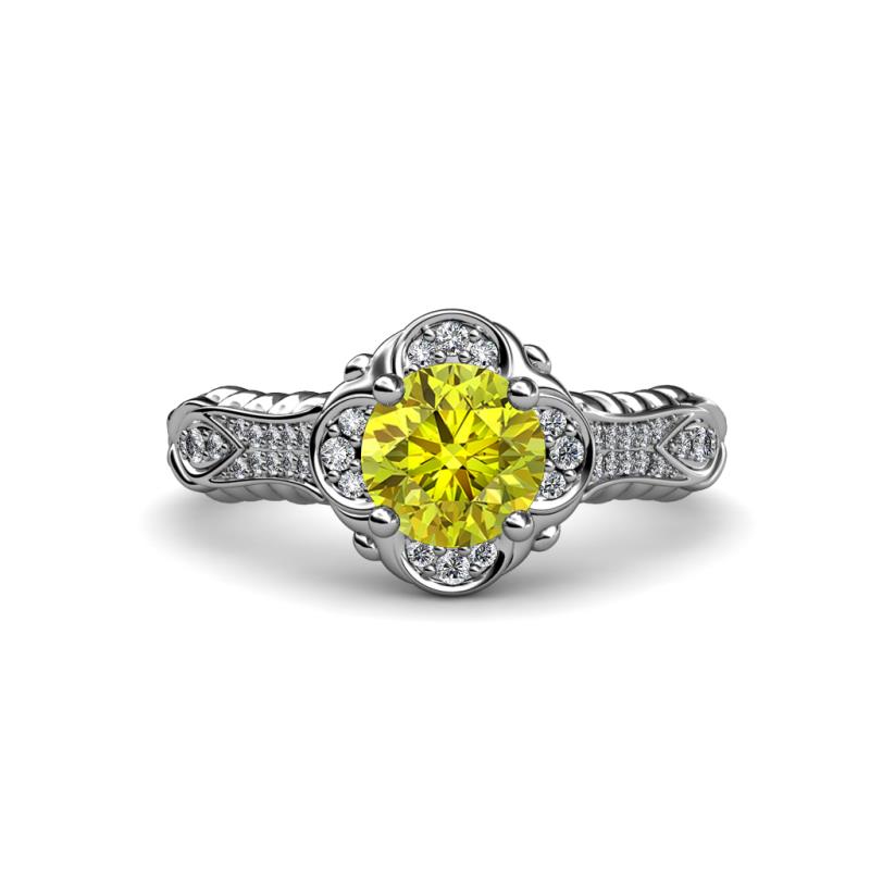 1 1/4 ctw Round Yellow and White Diamond Floral Womens Halo Engagement Ring 14K White Gold More Details ...