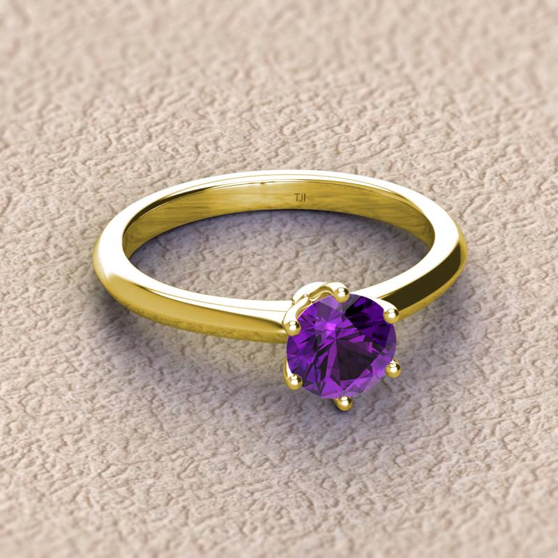 Round Amethyst 0.87 ctw Knife Edge Six Prong Womens Solitaire Engagement Ring 14K Yellow Gold More Details ...