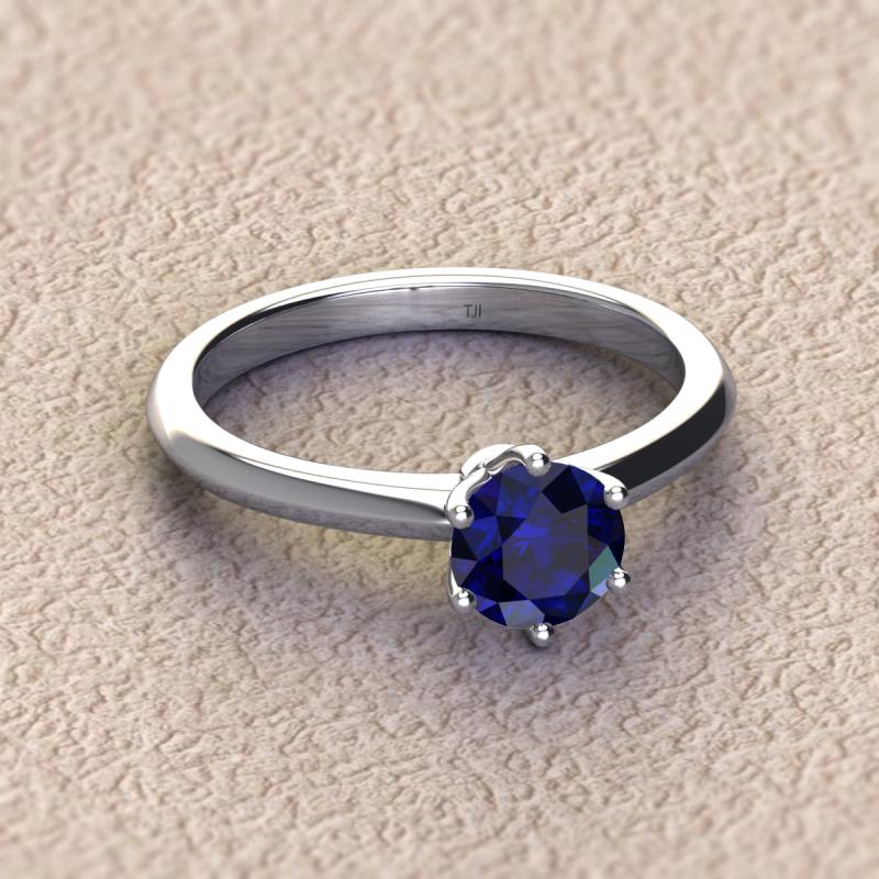 This glamorous solitaire engagement ring in 925 Sterling Silver is designed with a modern knife edge style to hold the center Blue Sapphire with Six Prongs setting for a beautiful look.