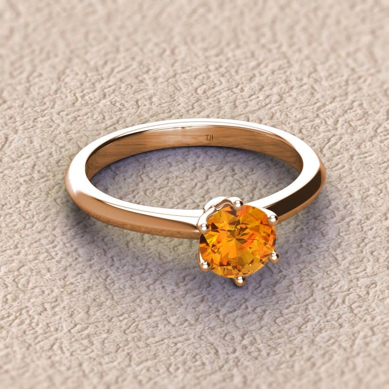 Round Citrine 0.87 ctw Knife Edge Six Prong Womens Solitaire Engagement Ring 18K Rose Gold More Details ...