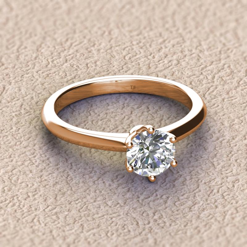 This glamorous solitaire engagement ring in 18K Rose Gold is designed with a modern knife edge style to hold the center Diamond with Six Prongs setting for a beautiful look.