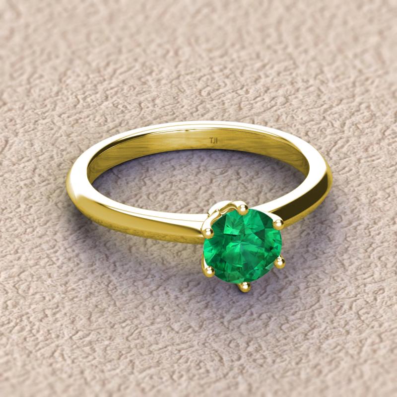 Round Emerald 0.80 ctw Knife Edge Six Prong Womens Solitaire Engagement Ring 18K Yellow Gold More Details ...