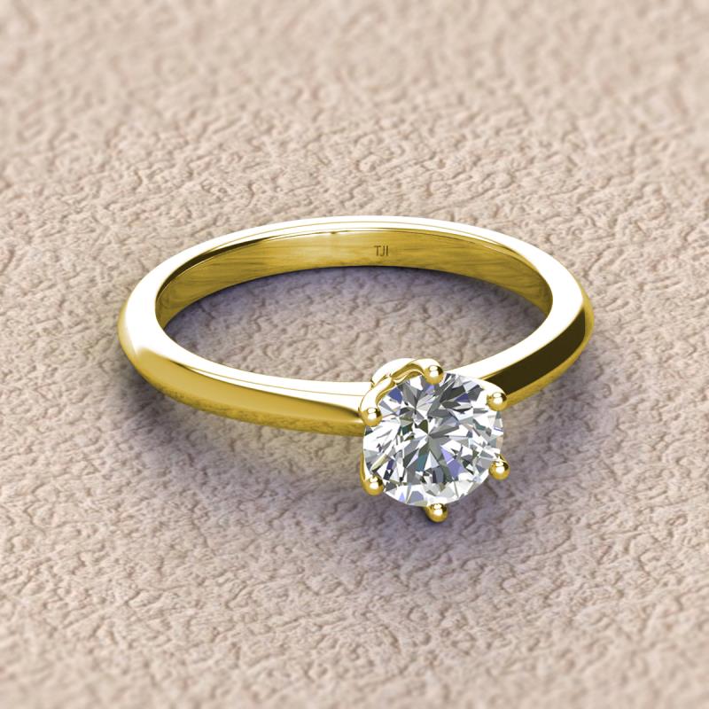 Round Forever One Moissanite 1.00 ctw Knife Edge Six Prong Womens Solitaire Engagement Ring 18K Yellow Gold More Details ...