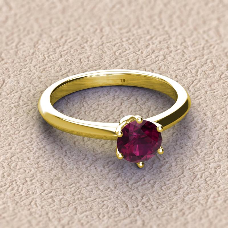 Round Rhodolite Garnet 1.00 ctw Knife Edge Six Prong Womens Solitaire Engagement Ring 18K Yellow Gold More Details ...