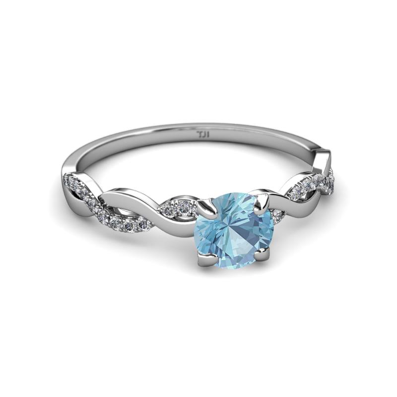 Get a meaningful Ring with Center Aquamarine symbolizing your love, crowned upon the shank which twist together with Diamond ribbon forming infinity sign, indicating your unending love.