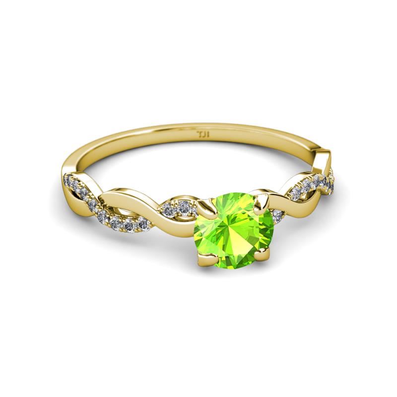 Get a meaningful Ring with Center Peridot symbolizing your love, crowned upon the shank which twist together with Diamond ribbon forming infinity sign, indicating your unending love.