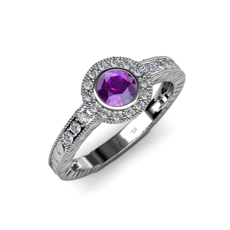 Amethyst and Diamond Engraved Milgrain Womens Halo Engagement Ring 0.64 ctw Platinum More Details ...