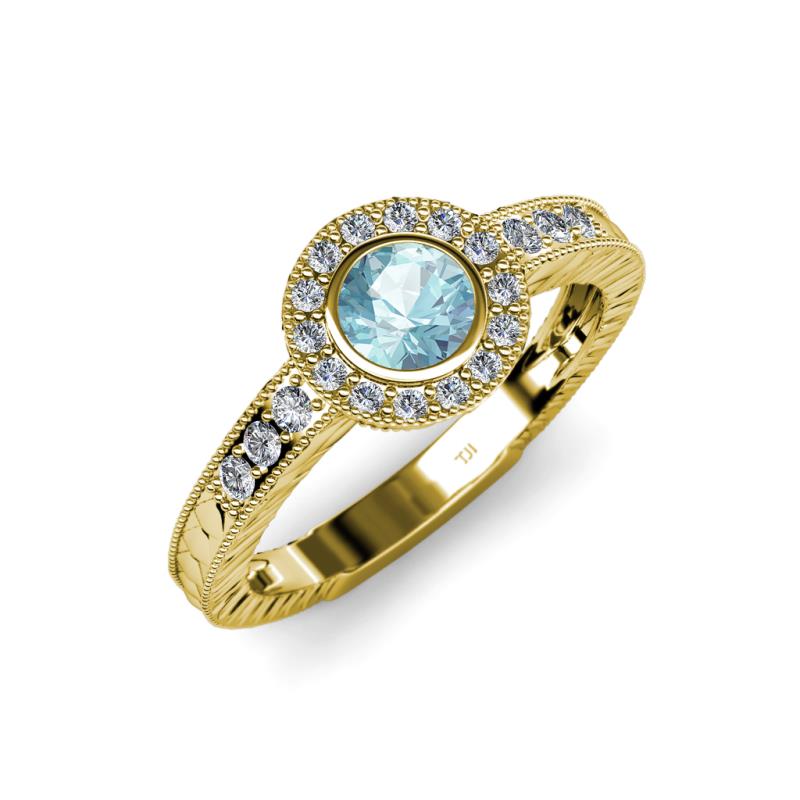 Aquamarine and Diamond Engraved Womens Halo Engagement Ring 0.64 ctw 18K Yellow Gold More Details ...