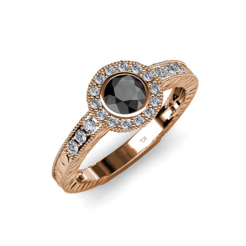 Black and White Diamond Engraved Womens Halo Engagement Ring 0.74 ctw 18K Rose Gold More Details ...