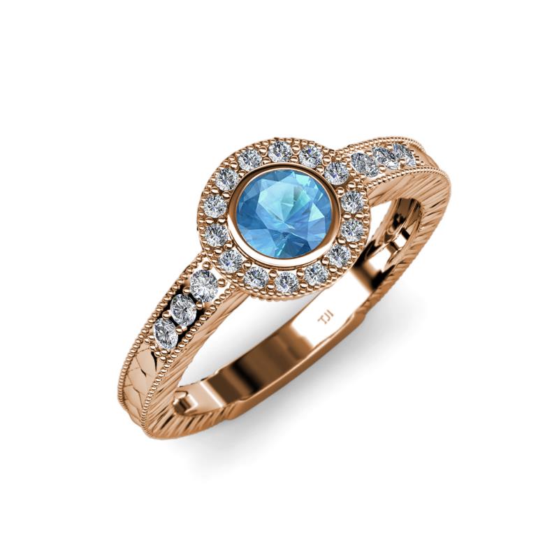 Blue Topaz and Diamond Engraved Womens Halo Engagement Ring 0.84 ctw 14K Rose Gold More Details ...