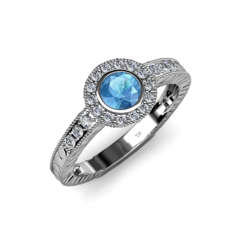 Blue Topaz and Diamond Engraved Womens Halo Engagement Ring 0.84 ctw 18K White Gold More Details ...