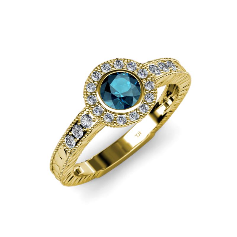 Blue and White Diamond Engraved Womens Halo Engagement Ring 0.74 ctw 18K Yellow Gold More Details ...