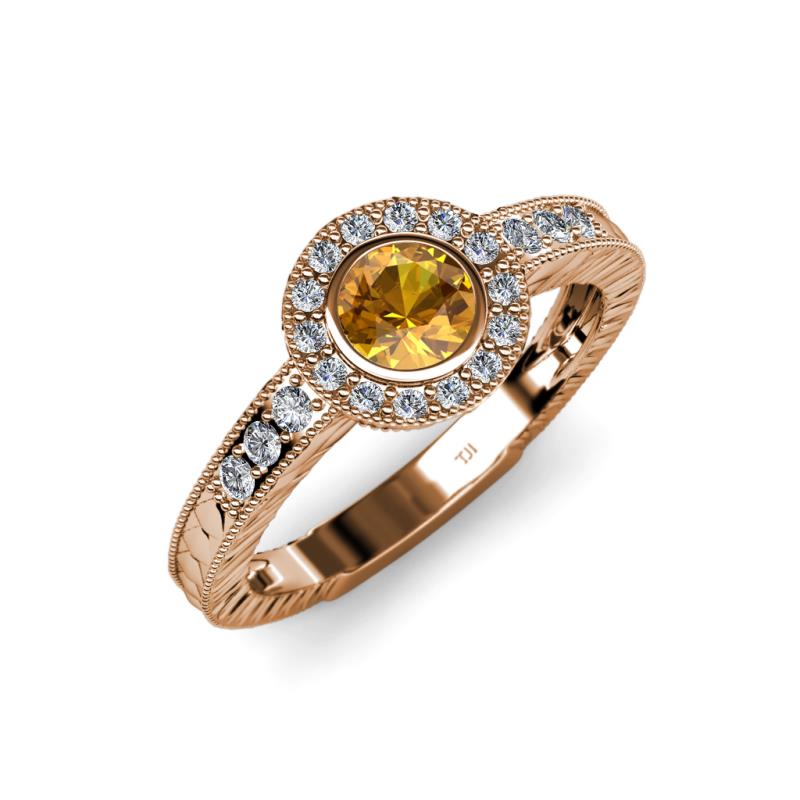 Citrine and Diamond Engraved Milgrain Womens Halo Engagement Ring 0.64 ctw 14K Rose Gold More Details ...