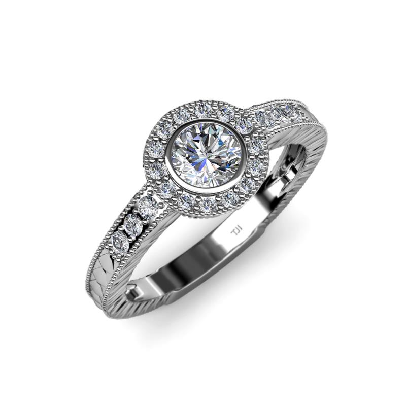 Diamond Engraved Womens Halo Engagement Ring with Milgrain Work 0.74 ctw 14K White Gold More Details ...
