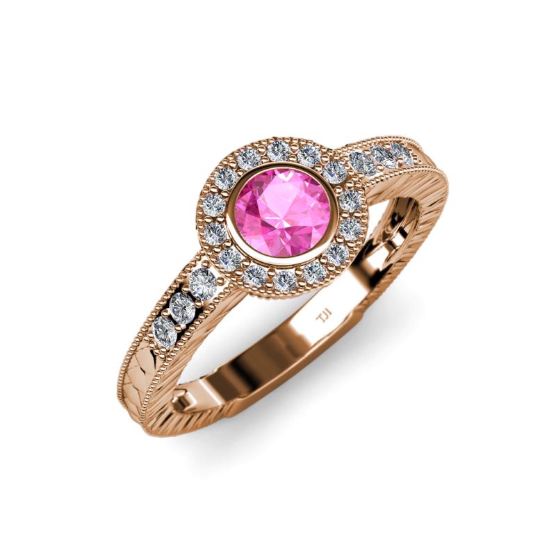 Lab Created Pink Sapphire and Diamond Engraved Womens Halo Engagement Ring 0.77 ctw 18K Rose Gold More Details ...