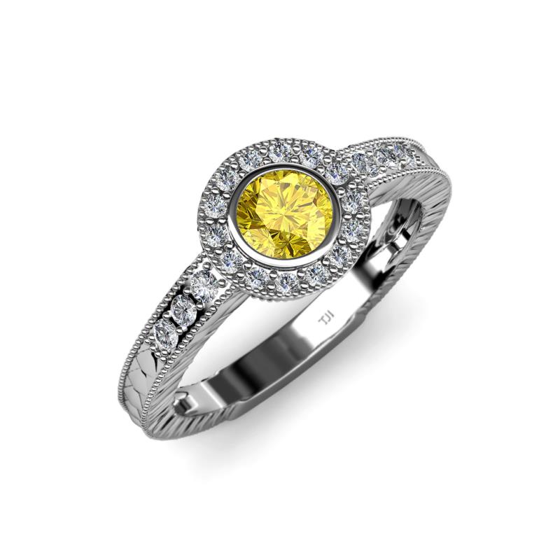 Lab Created Yellow Sapphire and Diamond Engraved Womens Halo Engagement Ring 0.77 ctw 14K White Gold More Details ...