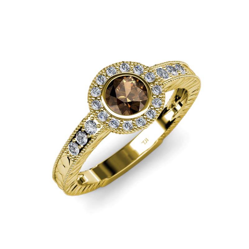 Smoky Quartz and Diamond Engraved Womens Halo Engagement Ring 0.72 ctw 14K Yellow Gold More Details ...