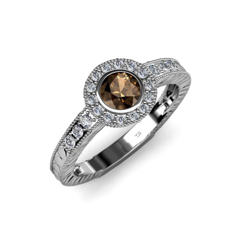 Smoky Quartz and Diamond Engraved Womens Halo Engagement Ring 0.72 ctw 18K White Gold More Details ...