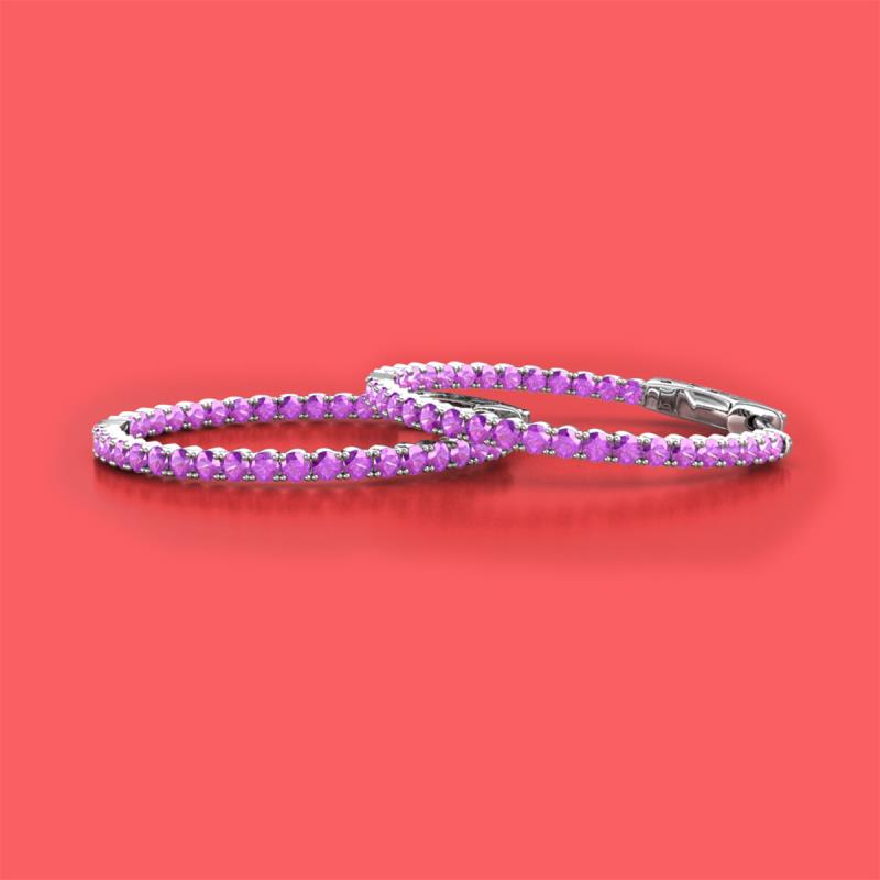 Round Amethyst 1.80 ctw Four Prong Inside Outside Women Eternity Hoop Earrings 14K White Gold More Details ...