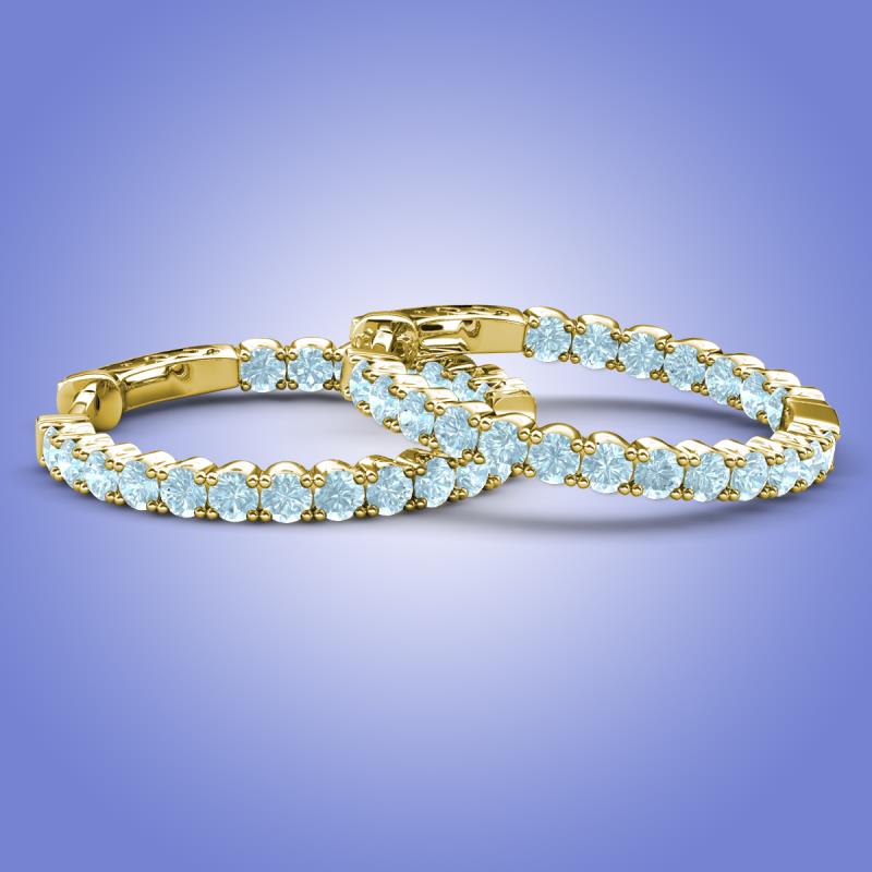 Round Aquamarine 1.20 ctw Four Prong Inside Outside Women Eternity Hoop Earrings 14K Yellow Gold More Details ...