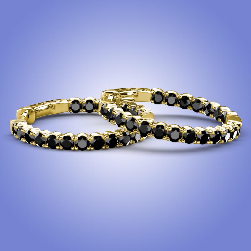 Round Black Diamond 1.89 ctw Four Prong Inside Outside Women Eternity Hoop Earrings 14K Yellow Gold More Details ...