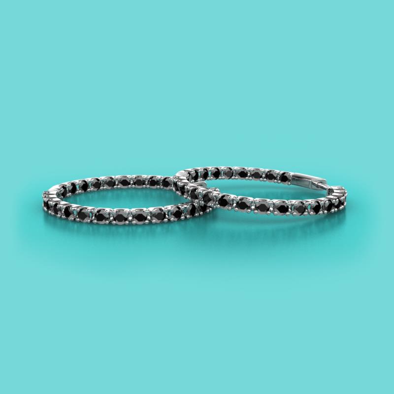 These are Beautiful Set of Eternity Hoop Earrings of 1.05 ctw with Four Prong Round Black Diamond set Inside and Outside giving it more Classy and Stylish Look.