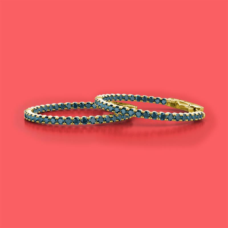 Round Blue Diamond 3.00 ctw Four Prong Inside Outside Women Eternity Hoop Earrings 18K Yellow Gold More Details ...