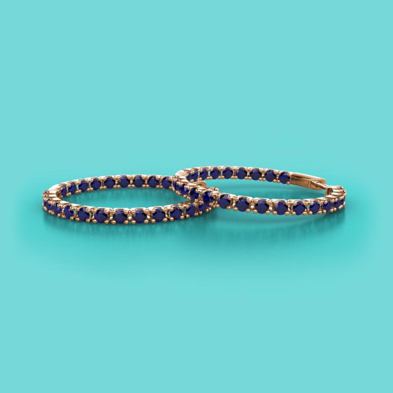 Round Blue Sapphire 1.05 ctw Four Prong Inside Outside Women Eternity Hoop Earrings 14K Rose Gold More Details ...