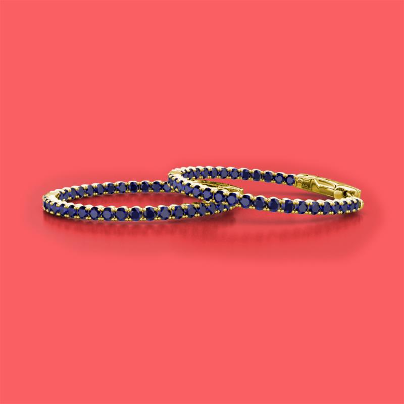 Round Blue Sapphire 2.84 ctw Four Prong Inside Outside Women Eternity Hoop Earrings 18K Yellow Gold More Details ...