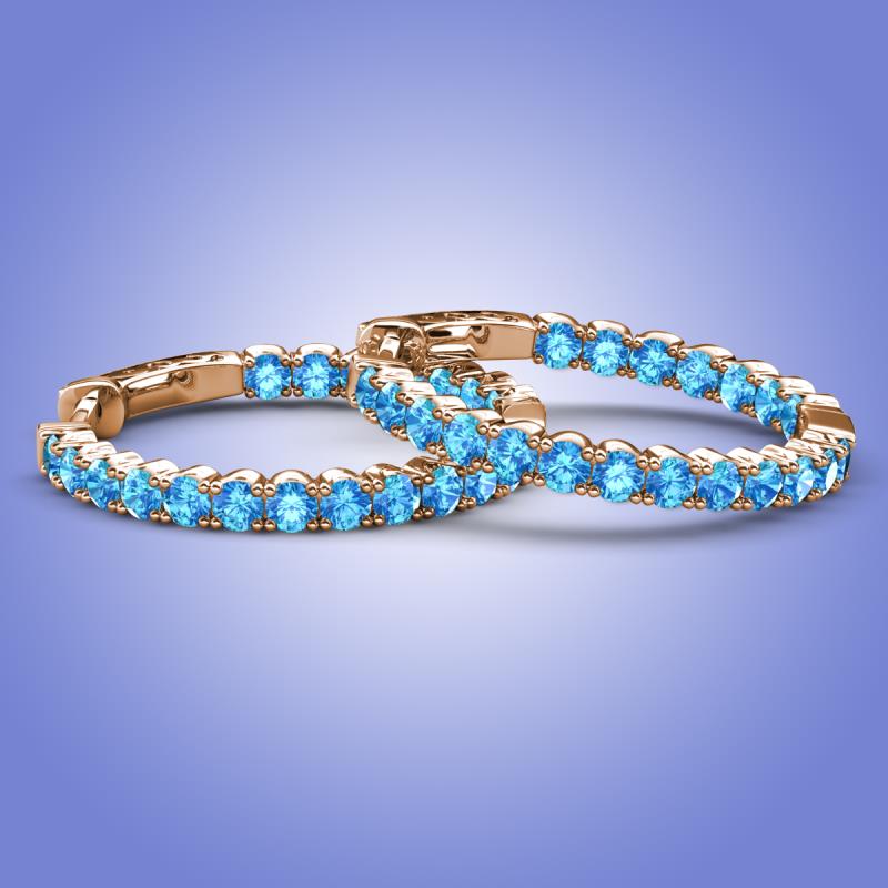 These are Beautiful Set of Eternity Hoop Earrings of 1.80 ctw with Four Prong Round Blue Topaz set Inside and Outside giving it more Classy and Stylish Look.