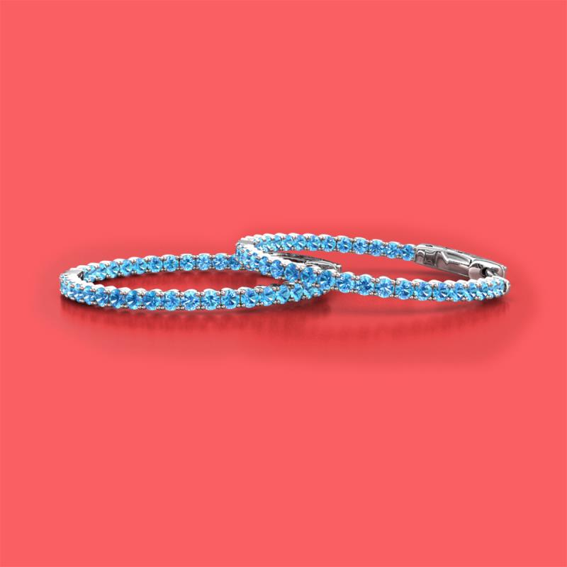 Round Blue Topaz 2.70 ctw Four Prong Inside Outside Women Eternity Hoop Earrings 14K White Gold More Details ...