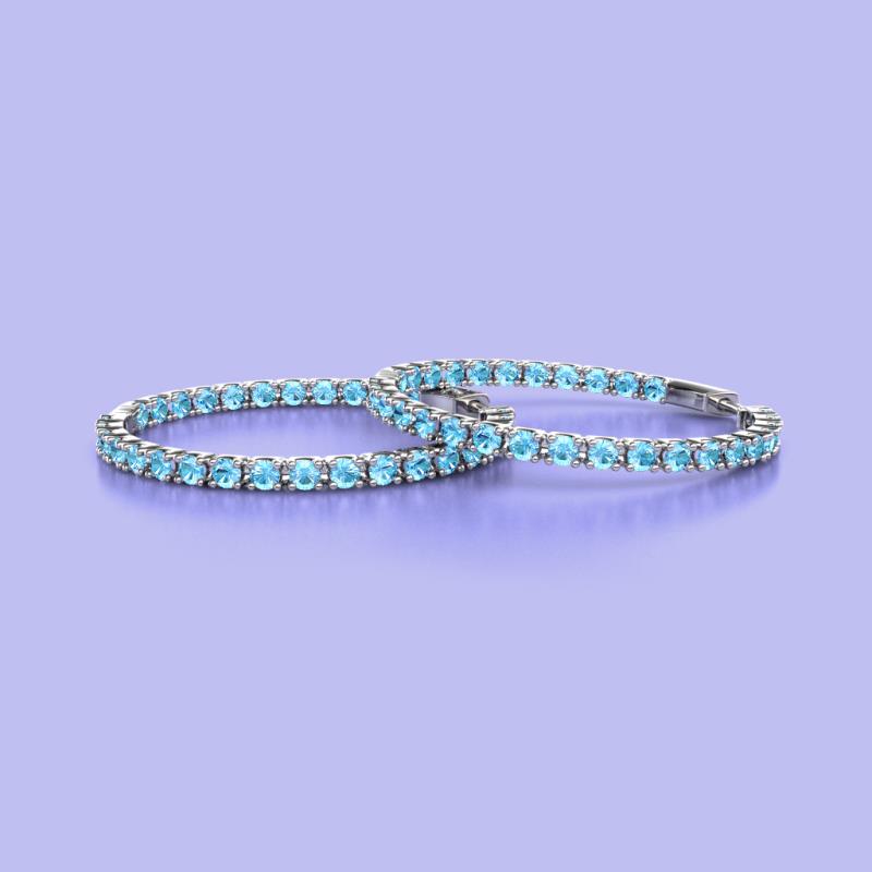 These are Beautiful Set of Eternity Hoop Earrings of 1.50 ctw with Four Prong Round Blue Topaz set Inside and Outside giving it more Classy and Stylish Look.