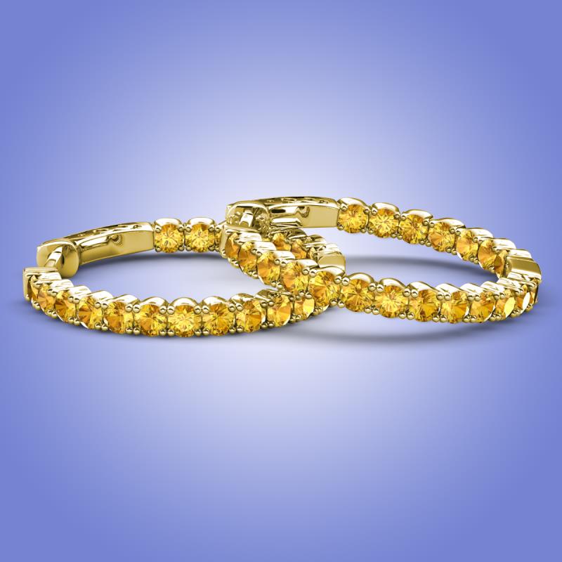These are Beautiful Set of Eternity Hoop Earrings of 1.20 ctw with Four Prong Round Citrine set Inside and Outside giving it more Classy and Stylish Look.