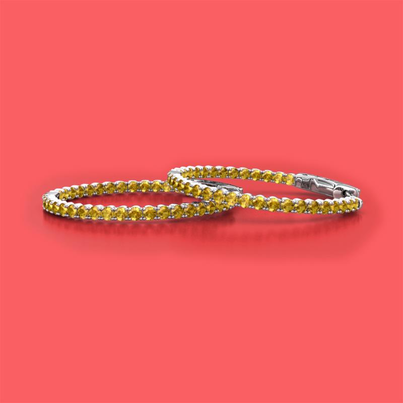 Round Citrine 1.80 ctw Four Prong Inside Outside Women Eternity Hoop Earrings 14K White Gold More Details ...