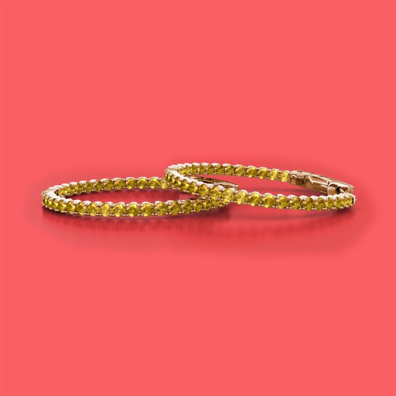 These are Beautiful Set of Hoop Earrings with Four Prong Round Citrine set Inside and Outside giving it more Classy and Stylish Look.