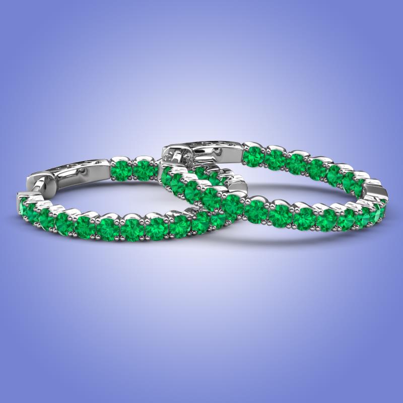 These are Beautiful Set of Eternity Hoop Earrings of 1.20 ctw with Four Prong Round Emerald set Inside and Outside giving it more Classy and Stylish Look.