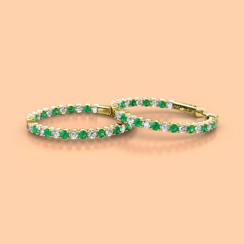 Round Emerald and Natural Diamond 1.21 ctw Inside Outside Women Eternity Hoop Earrings 14K Yellow Gold More Details ...