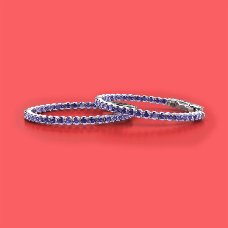 Round Iolite 1.80 ctw Four Prong Inside Outside Women Eternity Hoop Earrings 14K White Gold More Details ...