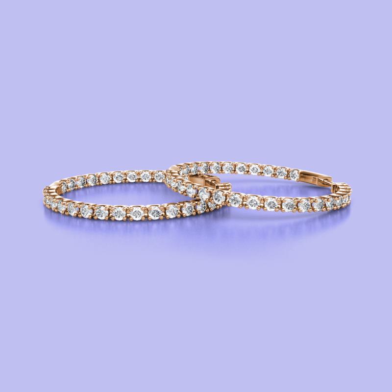 Round Lab Grown Diamond 1.80 ctw Four Prong Inside Outside Women Eternity Hoop Earrings 14K Rose Gold More Details ...