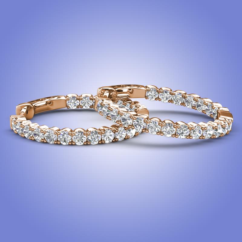 Round Lab Grown Diamond 2.00 ctw Four Prong Inside Outside Women Eternity Hoop Earrings 14K Rose Gold More Details ...