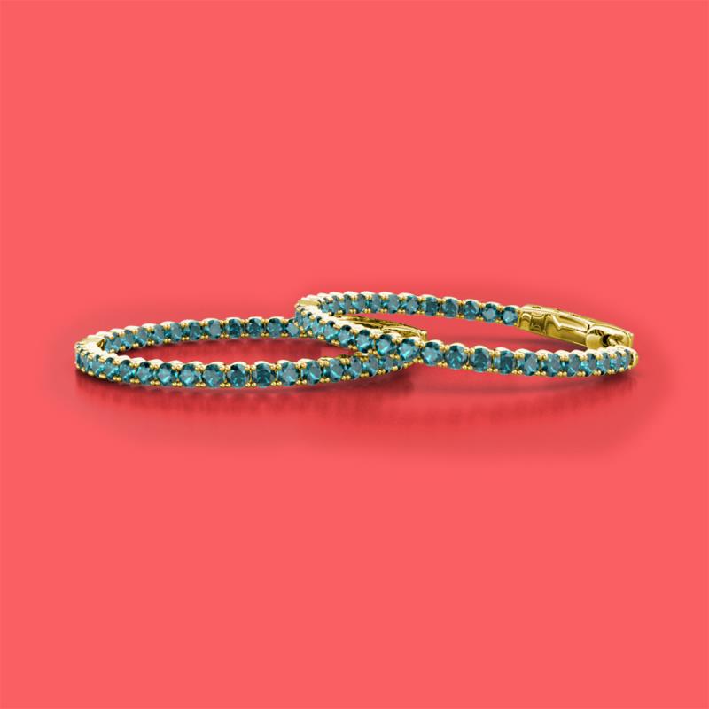 These are Beautiful Set of Hoop Earrings with Four Prong Round London Blue Topaz set Inside and Outside giving it more Classy and Stylish Look.