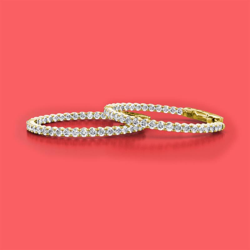 Round Natural Diamond 2.70 ctw Four Prong Inside Outside Women Eternity Hoop Earrings 14K Yellow Gold More Details ...
