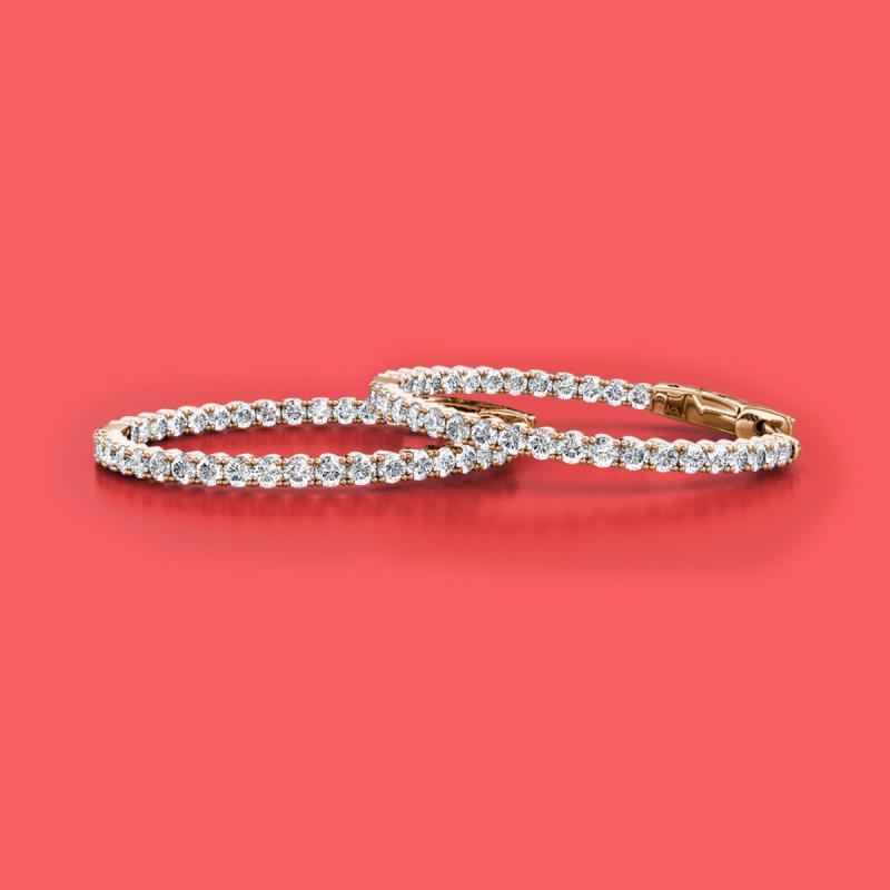 Round Natural Diamond 2.70 ctw Four Prong Inside Outside Women Eternity Hoop Earrings 14K Rose Gold More Details ...