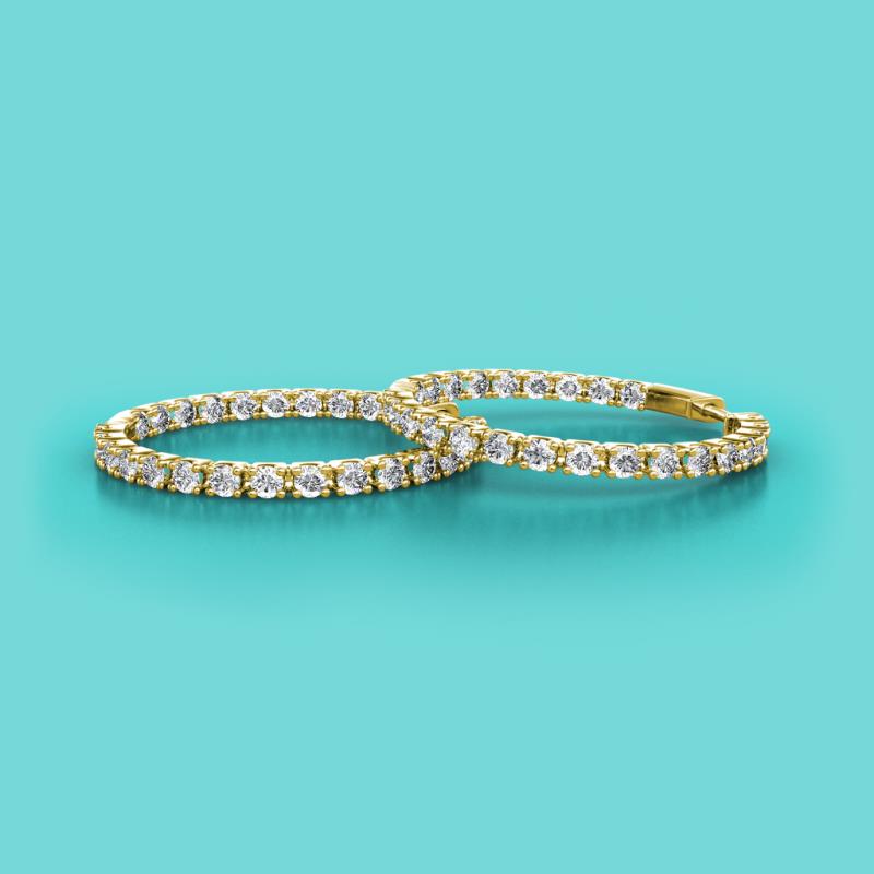 Round Natural Diamond 1.00 ctw Four Prong Inside Outside Women Eternity Hoop Earrings 14K Yellow Gold More Details ...