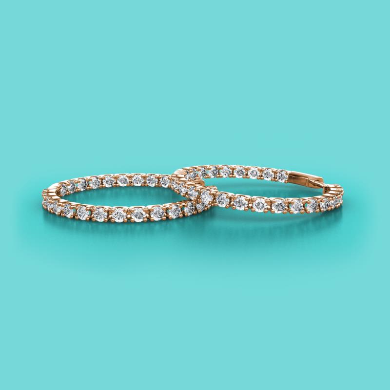 Round Natural Diamond 1.00 ctw Four Prong Inside Outside Women Eternity Hoop Earrings 14K Rose Gold More Details ...