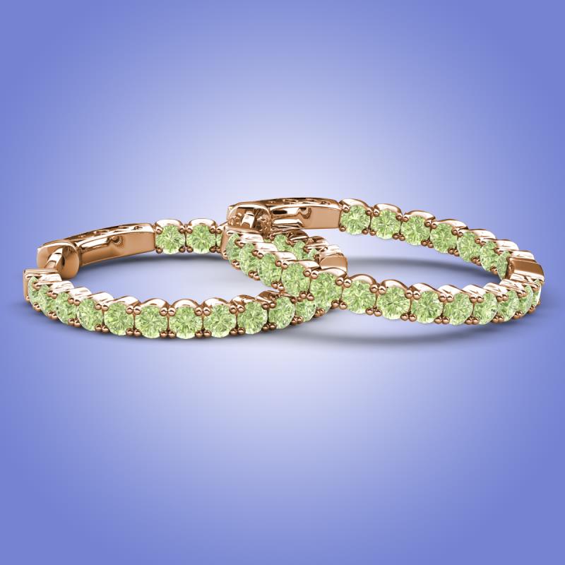 Round Peridot 2.00 ctw Four Prong Inside Outside Women Eternity Hoop Earrings 14K Rose Gold More Details ...