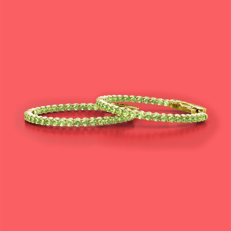 These are Beautiful Set of Hoop Earrings with Four Prong Round Peridot set Inside and Outside giving it more Classy and Stylish Look.