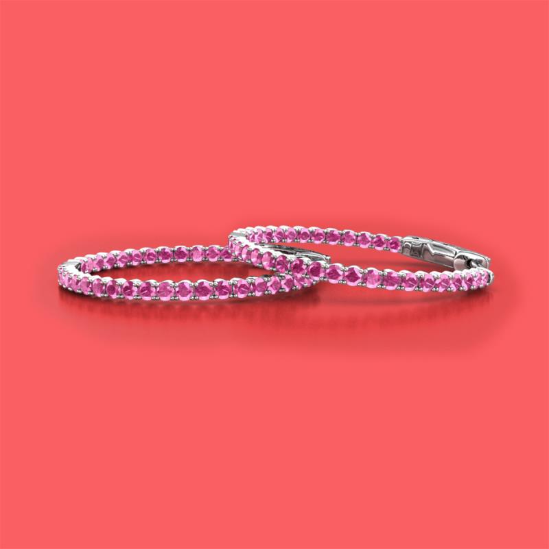 Round Pink Sapphire 2.84 ctw Four Prong Inside Outside Women Eternity Hoop Earrings 14K White Gold More Details ...