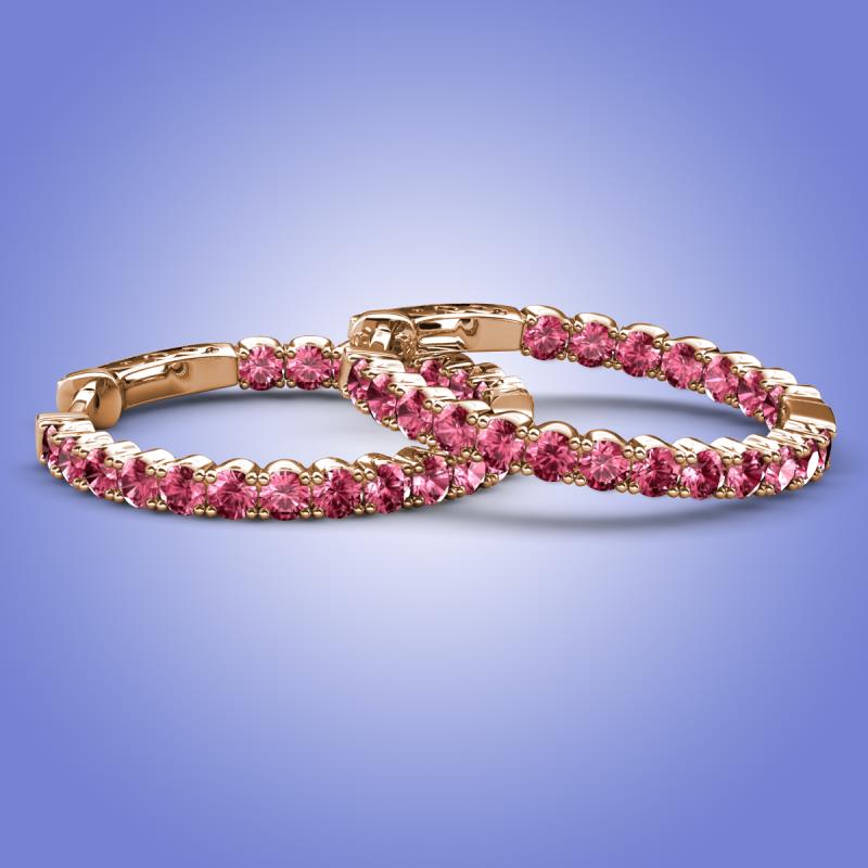 These are Beautiful Set of Eternity Hoop Earrings of 2.00 ctw with Four Prong Round Pink Tourmaline set Inside and Outside giving it more Classy and Stylish Look.
