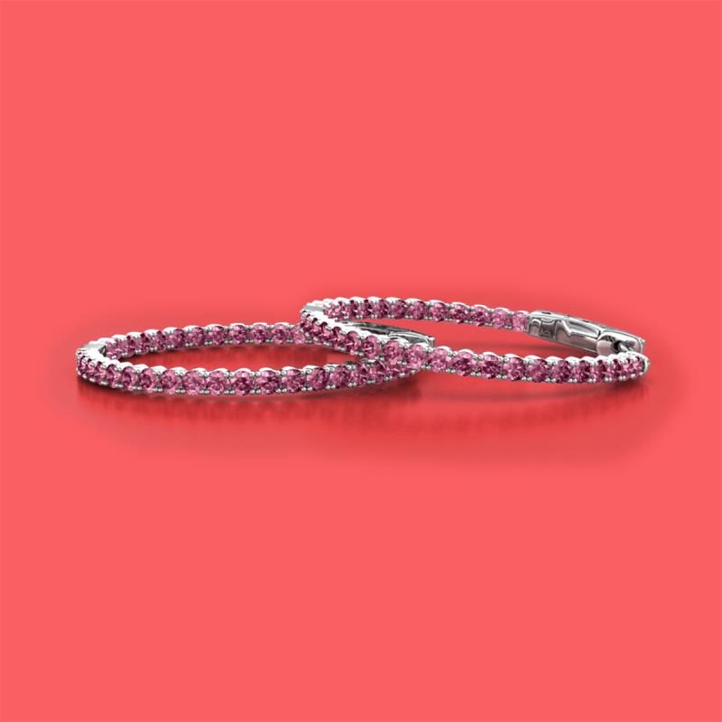 Round Pink Tourmaline 3.00 ctw Four Prong Inside Outside Women Eternity Hoop Earrings 18K White Gold More Details ...